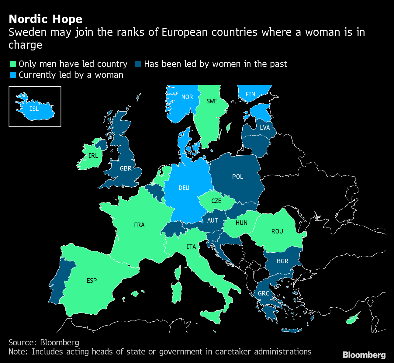 Sweden May Join Ranks Of Nordic Peers With Female Premier Map Bloomberg